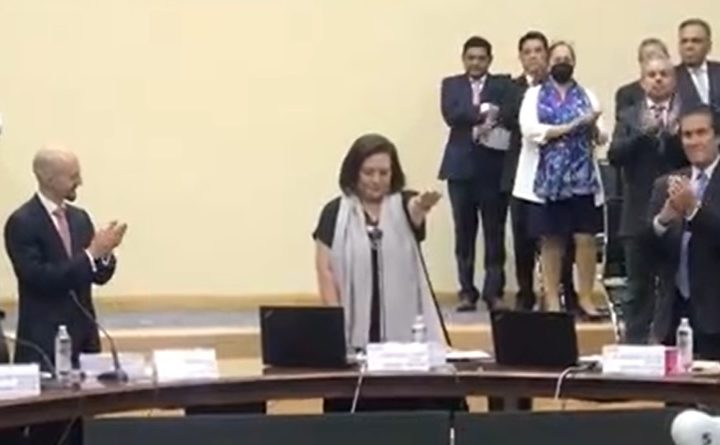 La funcionaria del órgano electoral tomó protesta de los tres consejeros: Rita Bell López, Jorge Montaño y...