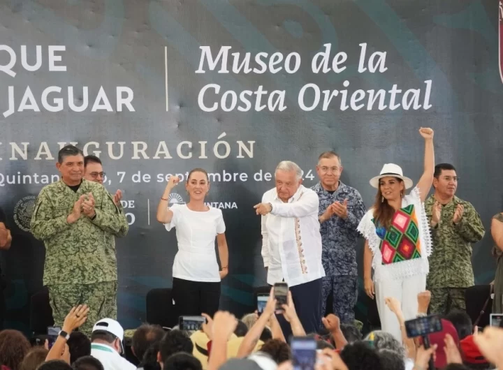 El presidente Andrés Manuel López Obrador y su sucesora, Claudia Sheinbaum inauguraron el Parque del Jaguar y...