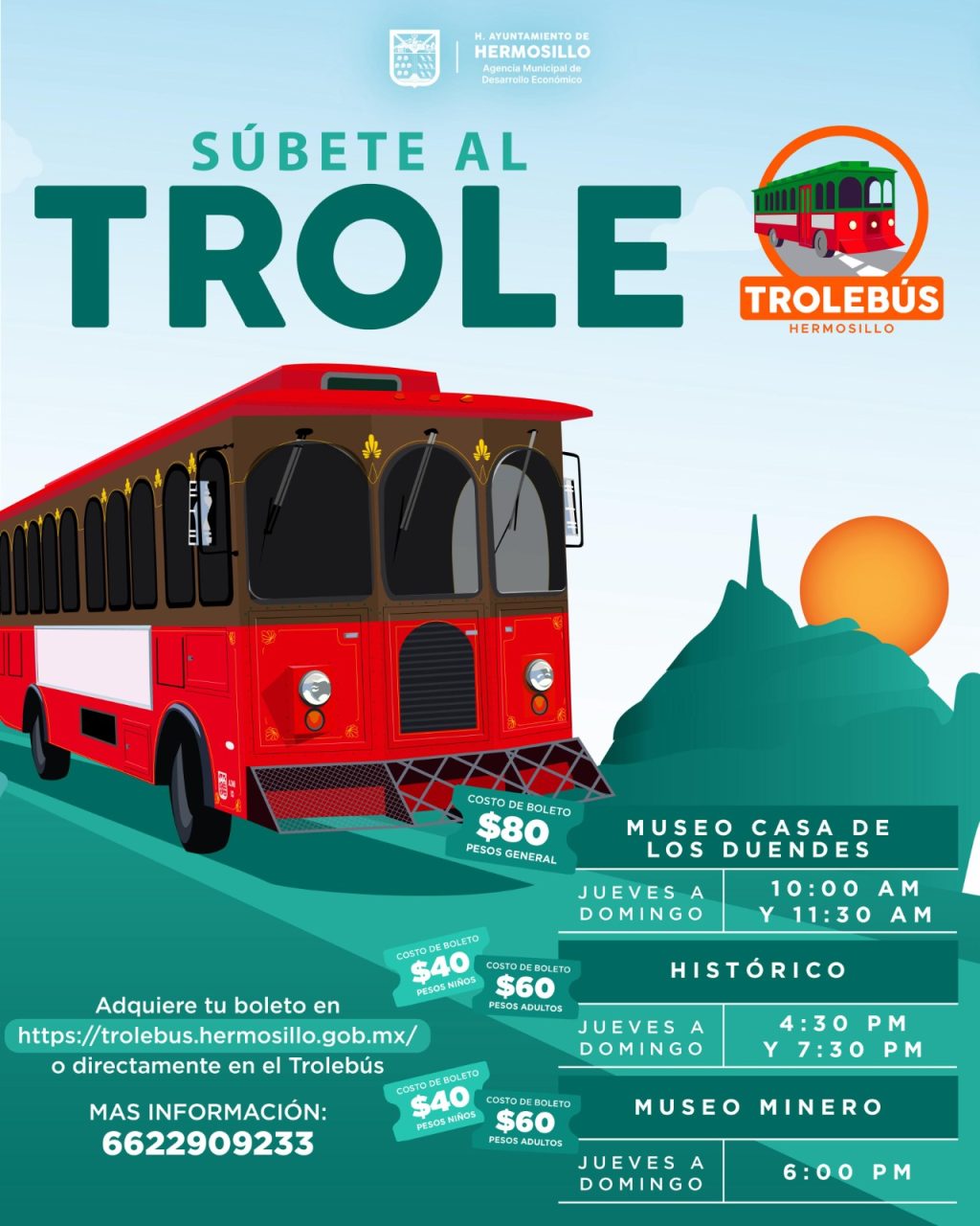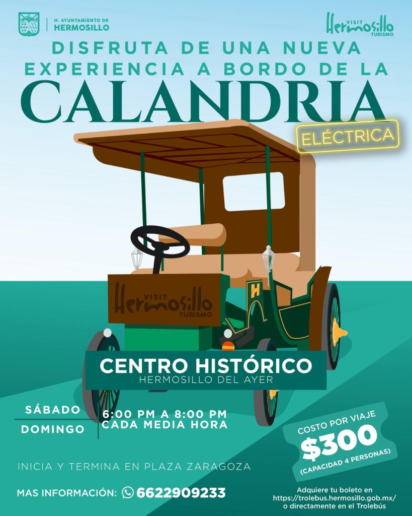 Asimismo, el Trolebús Hermosillo ofrecerá recorridos históricos y culturales del 17 al 20 de abril, incluyendo visitas al Museo Casa de los Duendes, Museo Minero y paseos por el centro histórico en la Calandria Eléctrica. La venta de boletos se realiza en línea y directamente en el trolebús.
