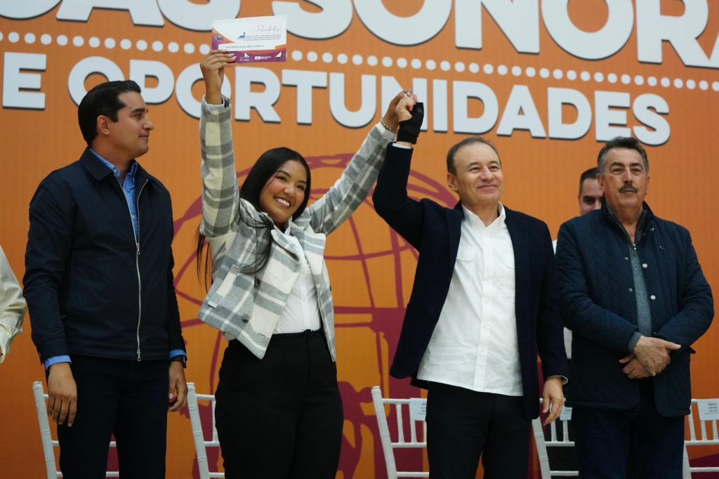 Cajeme, Sonora; 30 de enero de 2025.- Para los estudiantes de nivel superior, recibir una beca significa un gran respaldo para seguir con sus estudios y poder financiar todas las necesidades que requieran sus respectivas carreras, así lo manifestaron jóvenes sonorenses que recibieron su estímulo económico en Cajeme de manos del gobernador Alfonso Durazo Montaño.