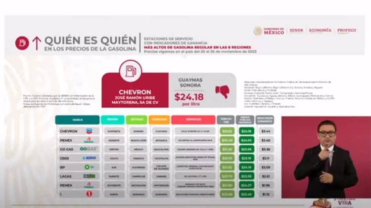 La gasolina Magna más cara se vendió en una estación de Chevron, en Guaymas, Sonora.