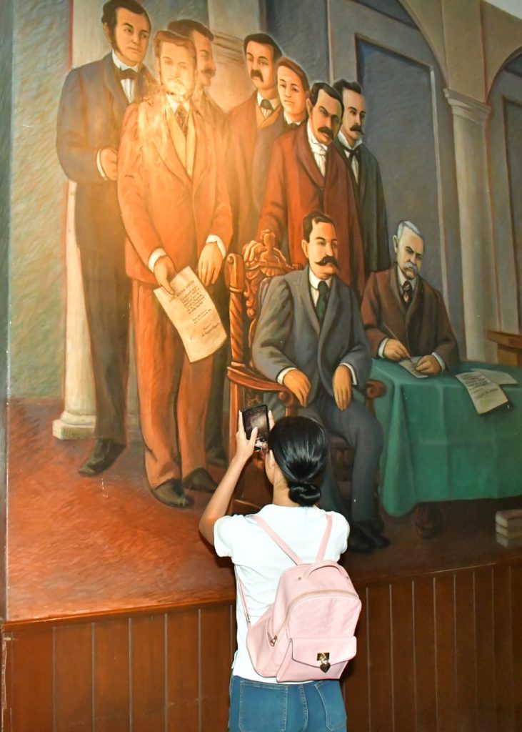 Autoridades del Ayuntamiento les compartieron datos relevantes sobre el artista creador de los pasajes históricos plasmados en las paredes del inmueble