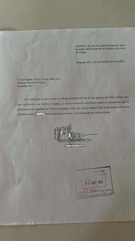 En entrevista para este medio binacional IRREVERENTE NOTICIAS, una fuente identificada que por cuestiones de seguridad llamaremos “Juan”, exhibió una serie de inconformidades generadas en el trámite de los permisos de transportación de armas por parte de la autoridad castrense al acudir a sus guarniciones militares en la Entidad.