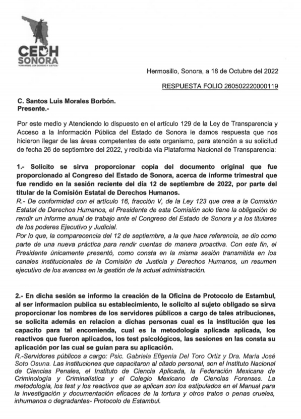 Derivado de esto, «el Organismo Defensor de Derechos Humanos Sonorense se comporta como en antaño lo hacia el Tribunal de la Santa Inquisición, al llevar a cabo como su omisión de manera intencional».
