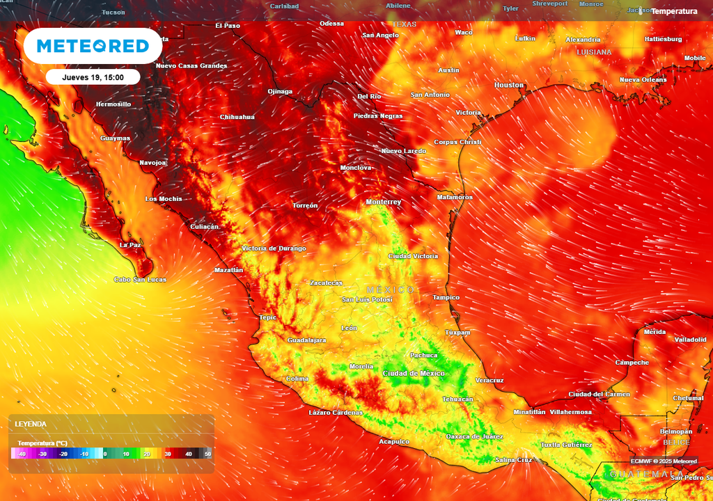 El intenso calor de 35 a 45 °C dominará el norte del país, especialmente entre Baja California, Baja California Sur, Sonora y norte de Sinaloa, siendo probables extremas de 45 a 50 °C entre Sonora y Baja California como es común. Sobre el noreste y Golfo de México, disminuirá el calor gracias a las lluvias, rondando los 26 a 34°C.