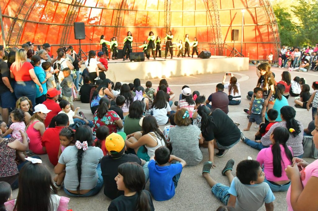 El esparcimiento inició desde las 17:00 horas de este domingo con presentaciones de las niñas y adolescentes de la academia Aloha de danzas polinesias, el show de la payasita Kitty, baile de botargas, el payaso Silvano y como espectáculo de cierre la agrupación musical Cuarto Frío.