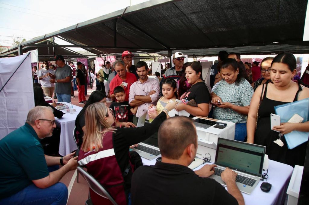 De forma ordenada, vecinas y vecinos del norte de Hermosillo accedieron a servicios de salud, educación, vivienda, expedición de documentos oficiales, entre otros, ofrecidos por servidoras y servidores públicos del Gobierno de Sonora que acudieron a atender cordialmente a la comunidad.