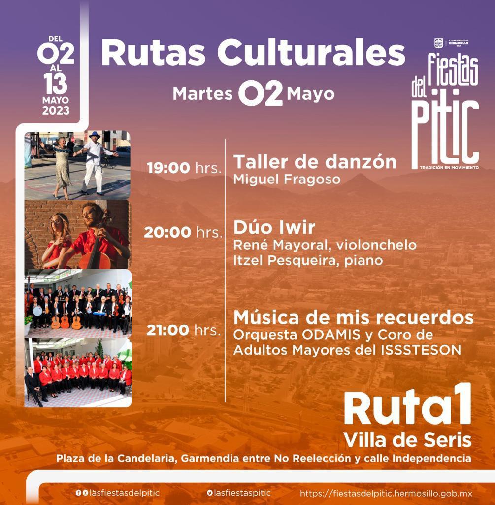 Hermosillo, Sonora; 1 de mayo, 2023.- Como parte de la celebración de los 323 años de la fundación de Hermosillo este martes 2 de mayo iniciarán las Rutas Culturales de las Fiestas del Pitic 2023, en la colonia Villa de Seris.
