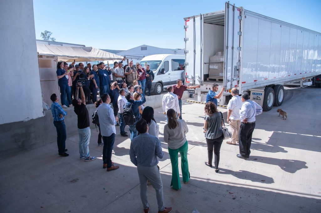 Junto al Consejero Presidente, las consejeras Alma Lorena Alonso Valdivia, Linda Viridiana Calderón Montaño y Ana Cecilia Grijalva Moreno, así como los consejeros Benjamín Hernández Ávalos y Francisco Arturo Kitazawa Tostado, y el secretario ejecutivo, Hugo Urbina Báez, atestiguaron la salida de los camiones que recorrerán 25 rutas para llevar la documentación electoral de las 2 millones 290 mil 254 personas que integran la Lista Nominal de Sonora.