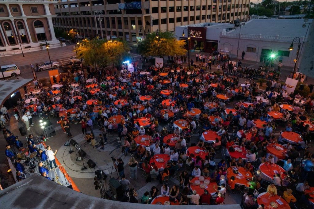 La velada se disfrutó con música y un show de luces que iluminó el edificio de la Plaza Bicentenario de la capital de Sonora.