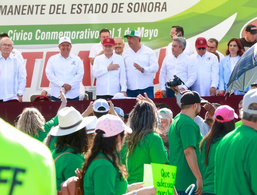 El gobernador Durazo Montaño, ante más de 30 mil trabajadores reiteró el compromiso que tiene con las y los sonorenses para avanzar en la mejora de la condición de las y los trabajadores y de continuar al frente de un gobierno sensible que atienda las demandas en el sentido que las y los trabajadores planteen.