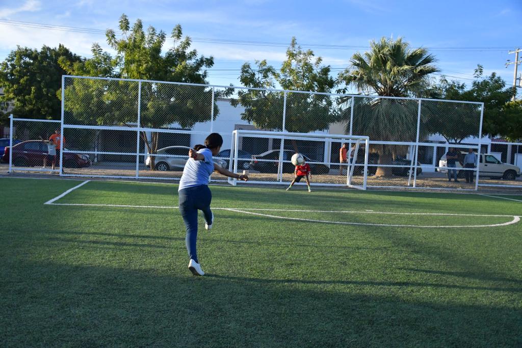 Hermosillo, Sonora; 23 de abril, 2023.- Con la motivación de entrenar en una cancha de futbol en condiciones dignas, niñas y niños de diversos equipos recibieron por parte de Antonio Astiazarán la rehabilitación del parque en Lomas de Linda Vista en el que fue reemplazado el pasto sintético, además de diversos arreglos con una inversión de 990 mil pesos.