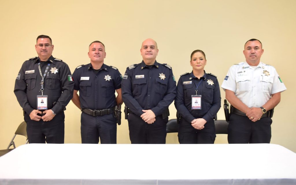 El funcionario presentó su informe ante representantes de medios de comunicación acompañado por Jesús Alonso Durón Montaño, Comisario Jefe; José Ángel Román Rodríguez, director de la Policía Preventiva; Mayte Hernández Baliño, directora de GEAVI y Pánfilo Ramírez, director de Tránsito Municipal.